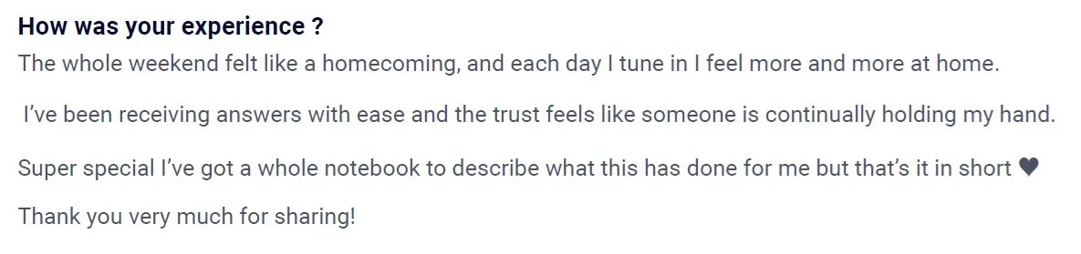 It was the deepest experience of my life. It uprooted parts of my shadow that I had buried deep. It brought me to a place of understanding with shame I’d been carrying all my life. It was a very intense and difficult week in ways and absolutely worth it. It helped me to join dots of things that have happened in my life and why I am the way I am. Leanne and Shelly hold an incredible space, deep bow of gratitude for the work you both do. 🙏🏼